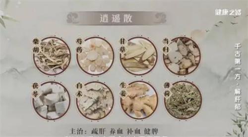 1.逍遙散是中醫(yī)方劑名,主要成分是當歸,茯苓,炙甘草,白術,白芍,柴胡,薄荷和生姜等八種中藥材,這個方劑是中醫(yī)藥方當中調和肝脾的代表方劑。