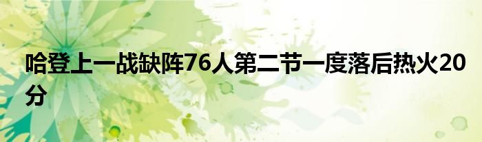 哈登上一戰缺陣,76人第二節一度落后熱火20分,全隊所有人的助攻數都不超過3次,恩比德22分2助獨木難支,全隊進攻艱難滯澀。