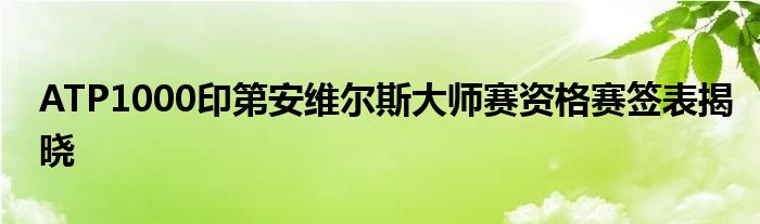 ATP1000印第安維爾斯大師賽資格賽簽表揭曉