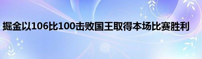 掘金客場對陣國王。最終掘金以106-100戰勝國王。