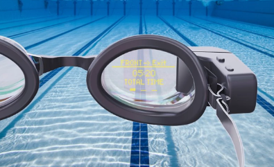 Holoswim 由香港初創公司Guangli 開發,由一組外觀相當普通的游泳鏡組成,一側帶有防水電子模塊,與佩戴者智能手機上的專用iOS/Android 應用程序配對。