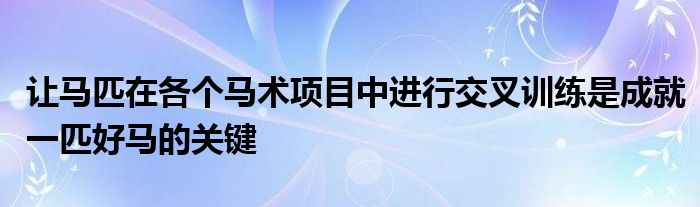 跨項目訓練有助于全面提升馬匹體質,發展心血管健康,而且做各種不同的訓練也有助于強健馬匹的骨骼和肌肉。