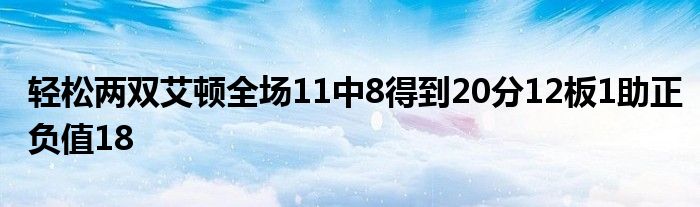 太陽隊中鋒艾頓今日投籃11中8,三分1中0,罰球4中4,僅出戰23分59秒,就得到了20分12籃板的兩雙,此外還有一個助攻入賬,正負值+18。