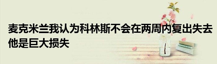 “我認為科林斯不會在兩周內復出,球隊將在兩周內再次評估他的傷情,到時候會有更多信息。”麥克米蘭說道。