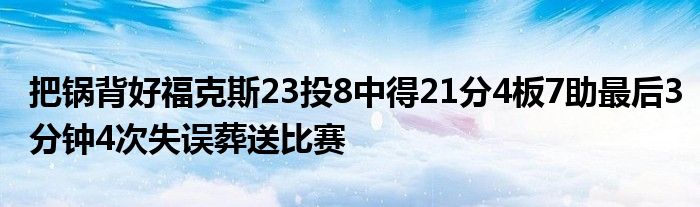 本場比賽,福克斯發揮欠缺穩定,全場他出戰38分鐘,23投8中得到了21分4板7助2搶斷的數據。全場比賽,他出現了9次失誤,在比賽的最后3分鐘,雙方戰成123平,但隨后福克斯連續出現4次失誤葬送比賽。