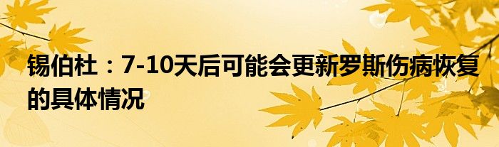 錫伯杜透露道:“會在7-10天后更新羅斯傷病恢復的具體情況。”