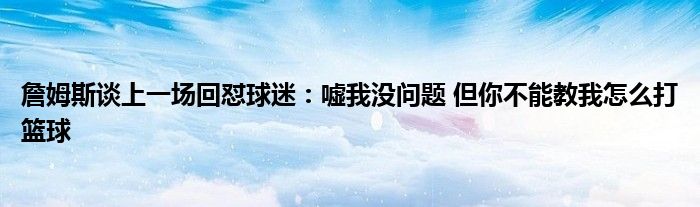 談到上一場球迷噓聲時,詹姆斯表示他對噓聲完全沒問題。但是當(dāng)談到上一場回懟球迷時,詹姆斯說道:“那個球迷在告訴我怎么打籃球。你不能教我怎么打籃球,不,那個球迷不能?!?/p>