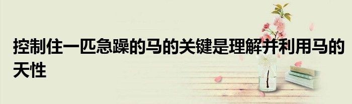 控制住一匹急躁的馬的關鍵是理解并利用馬的天性。馬在同一時間只能將注意力集中在一件事上,所以騎手應該要求馬匹把注意力集中在自己身上,而不是緊張急躁。