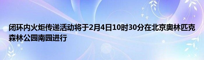 記者從28日舉行的北京冬奧會火炬傳遞媒體吹風會上獲悉:閉環內火炬傳遞活動將于2月4日10時30分在北京奧林匹克森林公園南園進行。
