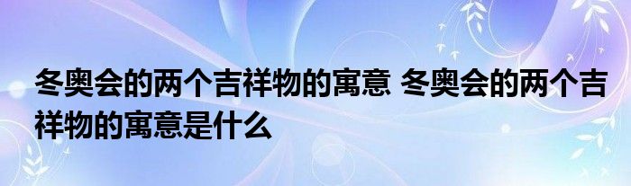大家好,小美來為大家解答以上問題。冬奧會(huì)的兩個(gè)吉祥物的寓意,冬奧會(huì)的兩個(gè)吉祥物的寓意是什么很多人還不知道,現(xiàn)在讓我們一起來看看吧!