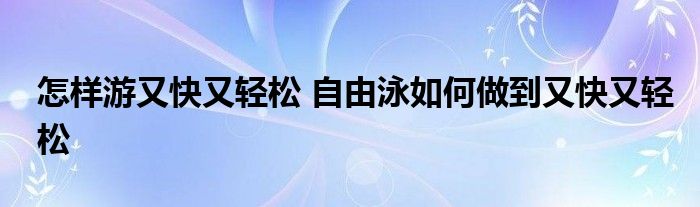 大家好,小美來為大家解答以上問題。怎樣游又快又輕松,自由泳如何做到又快又輕松很多人還不知道,現(xiàn)在讓我們一起來看看吧!