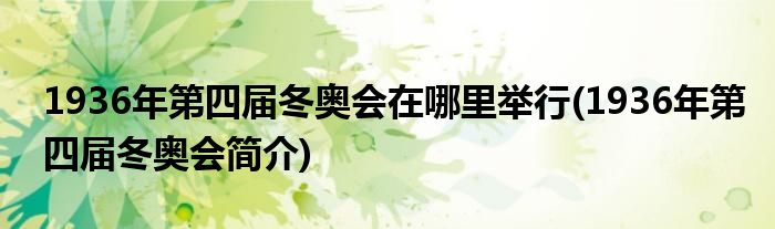 1、1936年,第四屆冬季奧運會在德國的兩個城市加爾米什和帕滕基欽舉行。