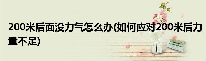 大家好,小美來為大家解答以上問題。200米后面沒力氣怎么辦,200米后面沒力氣如何處理很多人還不知道,現在讓我們一起來看看吧!