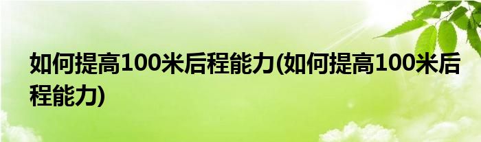 大家好,小美來為大家解答以上問題。如何提高100米后程能力,怎么提高100米后程能力很多人還不知道,現(xiàn)在讓我們一起來看看吧!