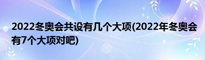 大家好,小美來為大家解答以上問題。2022冬奧會共設(shè)有幾個大項(xiàng),2022冬奧會共設(shè)有7個大項(xiàng)對嗎很多人還不知道,現(xiàn)在讓我們一起來看看吧!