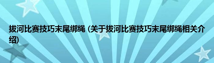 大家好,小美來為大家解答以上問題。拔河比賽技巧末尾綁繩,關(guān)于拔河比賽技巧末尾綁繩相關(guān)介紹很多人還不知道,現(xiàn)在讓我們一起來看看吧!