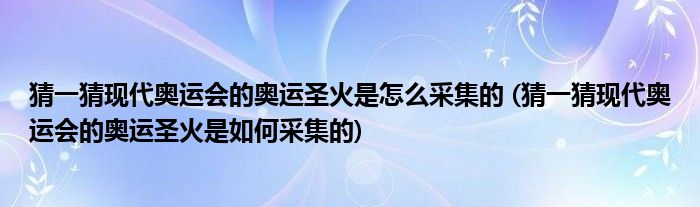 大家好,小美來為大家解答以上問題。猜一猜現代奧運會的奧運圣火是怎么采集的,猜一猜現代奧運會的奧運圣火是如何采集的很多人還不知道,現在讓我們一起來看看吧!