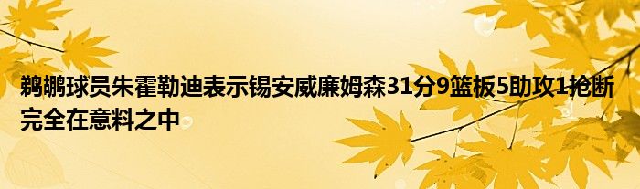 談到球隊新秀蔡恩-威廉森的表現時,霍勒迪說道:“老實說,意料之中的事情,我還沒看到誰能夠防守他。”
