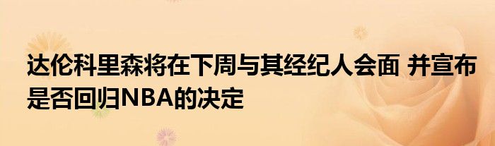 北京時間2月8日,據ESPN消息,自由球員達倫-科里森將在下周早些時候與他的經紀人Bill Duffy會面,屆時將就是否準備回歸NBA做出最后決定。