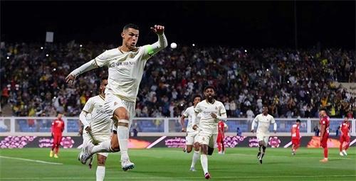 比賽開場第10秒鐘,禁區左側納吉拿球橫切將球推射進球網當中,幫助球隊拿到一分,場上比分為1:0。第14分鐘利雅得球隊拿到任意球機會,C羅主罰任意球,球打在人墻上彈出,隊友做出補救,但是并沒有幫助球隊拿到分數。第21分鐘科南左路傳中,哈巴利中路包抄將球打進球網,利雅得再拿一分,場上比分改為2:0。