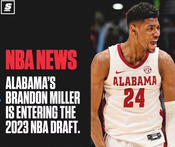 阿拉巴馬前鋒布蘭登-米勒宣布放棄NCAA參賽資格,參加#2023年NBA選秀大會#,備受關注。