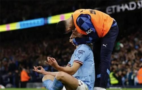 比賽結(jié)束后,曼城主帥瓜迪奧拉組織全隊(duì)為哈蘭德列隊(duì),祝賀他創(chuàng)造英超單賽季進(jìn)球紀(jì)錄。哈蘭德捂著臉害羞地跑過(guò),并調(diào)侃說(shuō):“列隊(duì)時(shí)每個(gè)人都拍我的背,太痛了!”