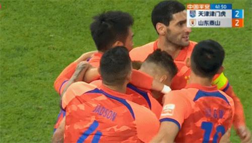第33分鐘,山東泰山隊(duì)連續(xù)圍攻對(duì)方禁區(qū),廖力生一記勁射,將皮球打在郭皓身上之后成功反彈入網(wǎng),此次進(jìn)球之后比分已經(jīng)扳平,比賽時(shí)間進(jìn)入到第41分鐘,莫伊塞斯斷球之后,右路采用橫傳的方式,成功將球傳至陳蒲腳下,陳蒲則推球入門得分,將比分改寫至2比3。
