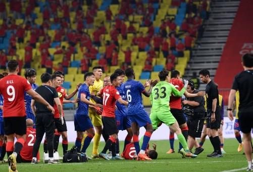 在中超聯賽第九輪的比賽中,成都蓉城對陣上海申花。最終,申花以1-2輸給了成都蓉城。比賽的最后階段,成都蓉城獲得了點球機會,艾克森成功罰進點球,使蓉城隊反超比分。隨后,現場發生混亂,申花隊的門將馬鎮因為拳擊對方外援羅慕洛而被紅牌罰下,主教練吳金貴也收到了黃牌。