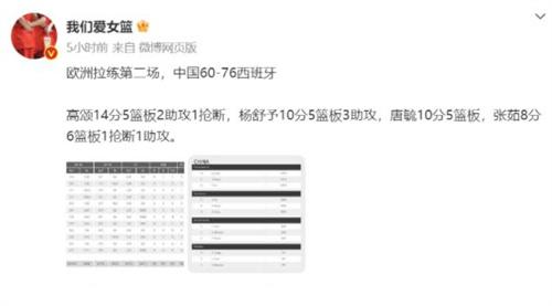 導(dǎo)讀 北京時(shí)間5月27日,中國女籃迎來了歐洲拉練賽的第二場(chǎng)比賽,對(duì)手是實(shí)力強(qiáng)大的西班牙隊(duì)。經(jīng)過四節(jié)的較量,中國隊(duì)以60-76慘敗對(duì)手,未能延續(xù)勝...