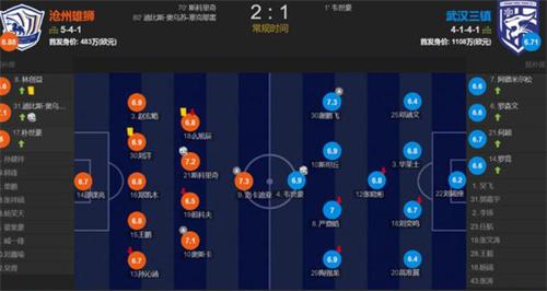 這場比賽在開局不到一分鐘的時間內(nèi),就迎來了一個小高潮,武漢三鎮(zhèn)的韋世豪成功進(jìn)球幫助球隊(duì)獲得1-0領(lǐng)先,隨后武漢三鎮(zhèn)在球場上的表現(xiàn)相對比較保守,而滄州雄獅利用主場優(yōu)勢開始逐漸掌握主動權(quán)。在比賽第70分鐘奧斯卡精準(zhǔn)傳球,幫助什科里奇破門成功,將比分扳平,第80分鐘,奧烏蘇成功破門完成逆轉(zhuǎn),最終滄州雄獅隊(duì)2-1逆轉(zhuǎn)打敗武漢三鎮(zhèn)隊(duì)。