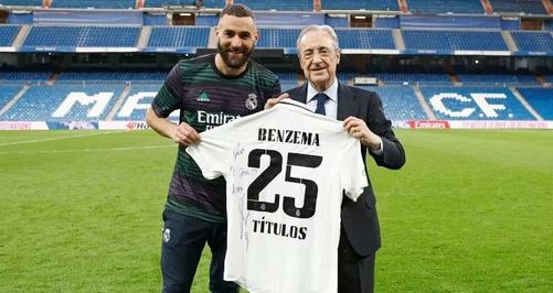 賽后,本澤馬向俱樂部主席弗洛倫蒂諾獻上了一件特殊的禮物。這件球衣上印有25個冠軍的標志,象征著本澤馬在皇馬效力期間所獲得的輝煌成就。他還在球衣上寫下了簡短而深情的字句:“獻給我的主席,KB9”。
