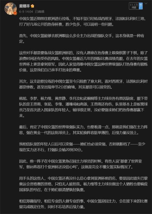 麥穗豐還指出,中國女籃目前主要依賴一批黃金一代的主力球員,但替補球員還需要歷練的機會,現在的失利對于她們而言其實并不是壞事,這是一個成長的過程。
