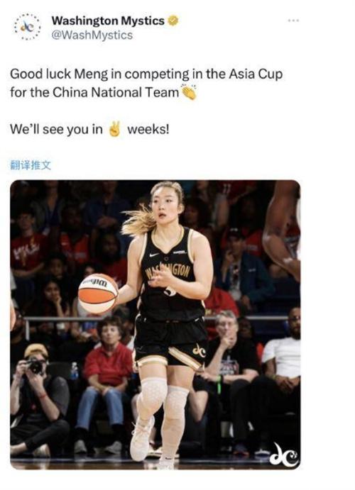 李夢加入中國女籃征戰亞洲杯,華盛頓神秘人送上祝福