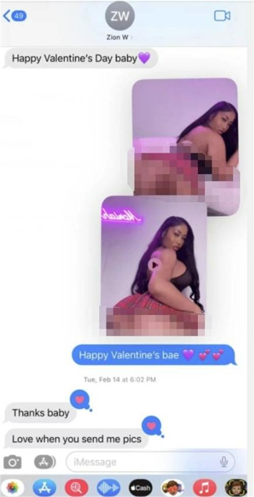 早在6月9日,錫安通過視頻宣布他即將成為父親,并與女友Rose迎接一個女兒的到來。然而,接著Moriah Mills爆料稱自己被錫安欺騙,并曝光了兩人之間露骨的聊天記錄。
