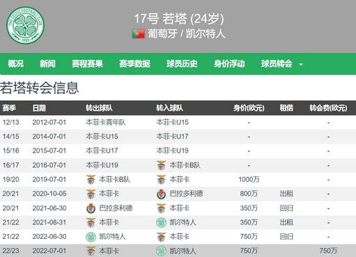 那么若昂-若塔是誰呢?他是出自本菲卡青訓的葡萄牙左邊鋒,曾經(jīng)被租借至巴拉多利德和凱爾特人。去年夏季轉(zhuǎn)會窗,他以750萬歐元的轉(zhuǎn)會費永久加盟凱爾特人,并成為球隊的主力左邊鋒,身價排在隊內(nèi)第二位(1300萬歐元),僅次于蘇超金靴格里菲斯(1400萬歐元)。凱爾特人將若塔賣給吉達聯(lián)合,無疑是賺了一大筆,而若塔也實現(xiàn)了在沙特獲得高薪的夢想,吉達聯(lián)合得到了一位實力出眾的球員,實現(xiàn)了三方共贏的局面。