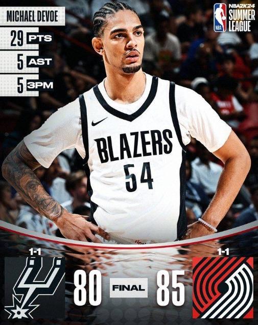 在其中一場比賽中,馬刺隊以80-85不敵開拓者隊。這場比賽中,馬刺隊的球員文班亞馬狀態明顯回暖,上半場就輕松得分上雙,并且在下半場發揮更出色。他表現全面,得到了27分12籃板的出色數據。然而,盡管文班的個人表現出色,但馬刺隊最終未能取得勝利。與此同時,開拓者隊的邁克爾-德沃表現出色,得到了29分5助攻,幫助球隊獲得勝利。