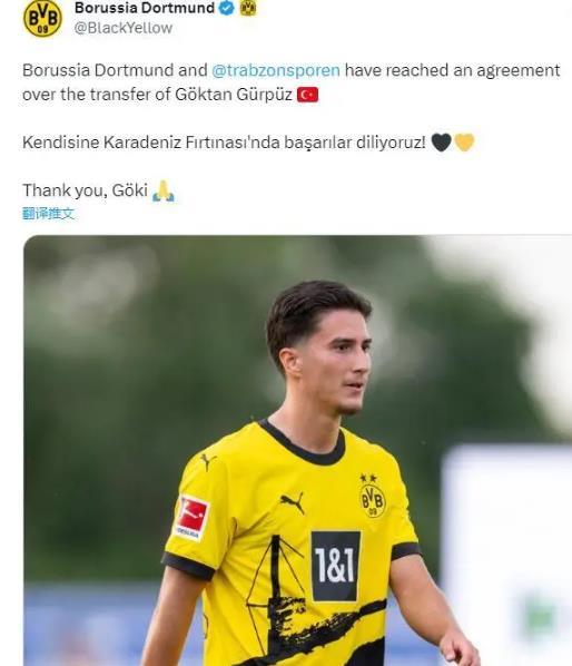 多特蒙德在官方聲明中表示:“多特蒙德已經與特拉布宗體育就古爾普茲的轉會達成了協議。我們祝愿他在黑海之畔取得成功。感謝你,古爾普茲。”