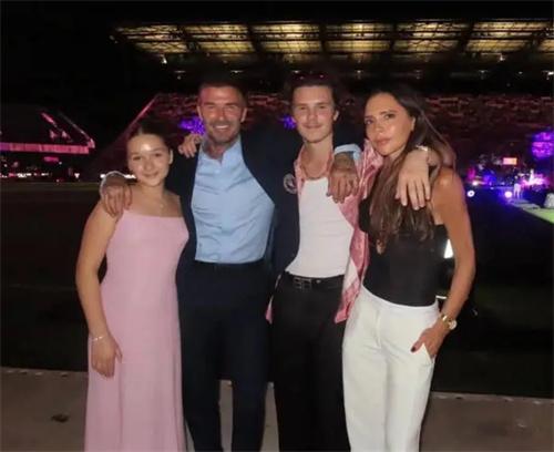 從網傳的視頻中來看,貝克漢姆身穿裁剪得體的黑色西裝,他的妻子維多利亞身穿一身白色西裝,內搭黑色V領襯衫,顯得十分具有女強人的氣息,大兒子并沒有來到現場,二兒子羅密歐在英國訓練同樣沒有到達現場。可以說貝克漢姆一家人都是在全球具有超強的流量,這一家人的合體照站在哪里都成為焦點人物。