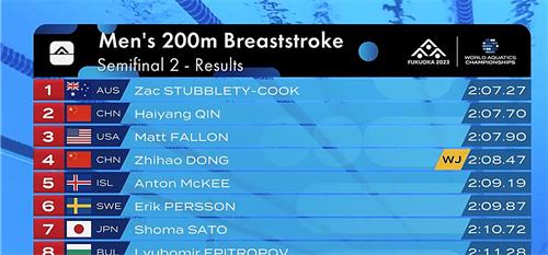 北京時間7月27日,在日本地區福岡舉行的世錦賽比賽當中,男子兩百米蛙泳半決賽,中國選手覃海洋代表中國隊出戰。這場比賽對于他本人而言也是十分的輕松,成功的以2分07秒70的成績晉級到了200m蛙泳的總決賽,進入到決賽以后,他的目標是沖擊第四個金牌。他之前已經拿下了三塊金牌,分別是100m蛙泳和男女4×100混合接力以及50米游泳比賽,值得一提的是,另外一名選手董志豪也成功的晉級了總決賽,并且他的記錄是創造了青年世界紀錄,值得祝賀。
