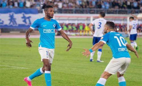 第25分鐘,晏新力帶球在后場被對方搶斷,朱挺得球之后將球傳到中路,曼佐基抓住機(jī)會頭球攻門成功得手,大連人1-0領(lǐng)先上海申花。