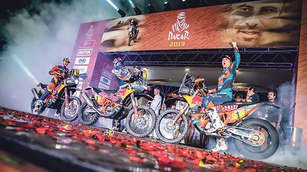 2019年的達喀爾拉力賽讓來自世界各地的135名摩托車騎手在秘魯,玻利維亞和阿根廷的比賽中跑了9,000公里,以爭取勝利。領先的是KTM車手Toby Price,他以33小時57分16秒的成績完成了比賽。對于KTM來說,普萊斯的勝利使他在2016年的成功之后成為了兩次冠軍。
