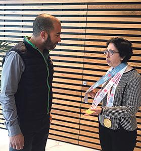 集團首席執(zhí)行官Pio Vassallo祝賀獲得兩枚特奧會金牌的Vassallo集團員工Jessica Farrugia。