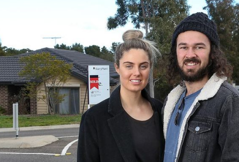 莫妮克·謝里丹(Monique Sheridan)和米切爾·庫克(Mitchell Kook),今年24歲,都在他們最近購買的Sunbury房屋外。