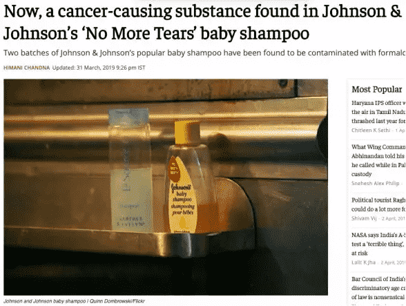 這一次,強生公司的嬰兒洗發(fā)水在印度被檢測出了有害物質。