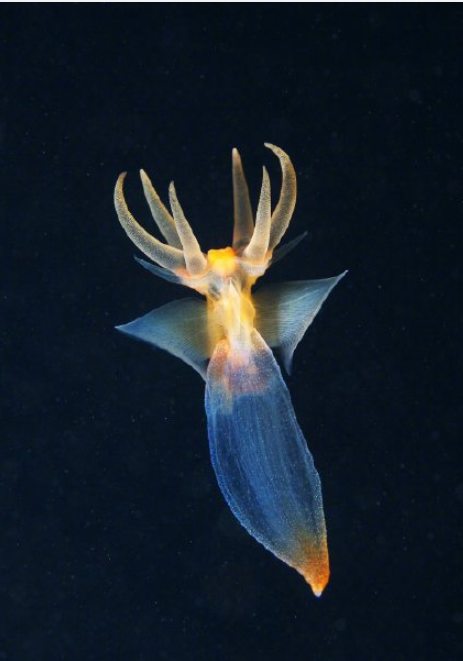 近日,俄羅斯?jié)撍畣T在白海冰下拍到裸海蝶。裸海蝶是一種浮游軟體動(dòng)物,生活在北極、南極等寒冷海域的冰層之下。因游動(dòng)時(shí)拍動(dòng)著透明的兩翼,外型看似傳說(shuō)中的天使,又被人稱作“海天使”。