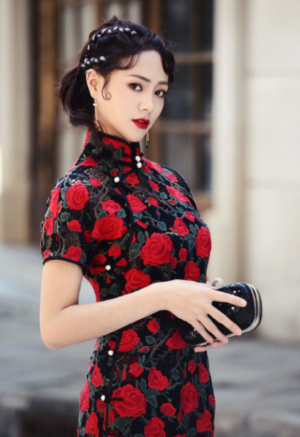 青春訓練生謝可寅,謝可寅的扮相讓我想到了美艷的蜘蛛精,謝可寅的造型很有特色,其他人都是顏色較淡雅的旗袍,而謝可寅穿的是深紅色帶玫瑰印花的高領旗袍,謝可寅的發型也很吸睛,額前幾縷頭發扎成了小辮子,和其他的頭發一起扎到了后面,高高隆起,耳側的小碎發也特意卷了起來,就像是一個放歪了的字母e,整體造型讓謝可寅看起來生動明艷,不可方物。
