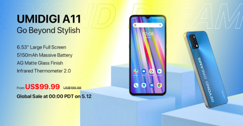 UMIDIGI A11將于2021年5月12日在全球速賣通上以99.99美元的價格發售。