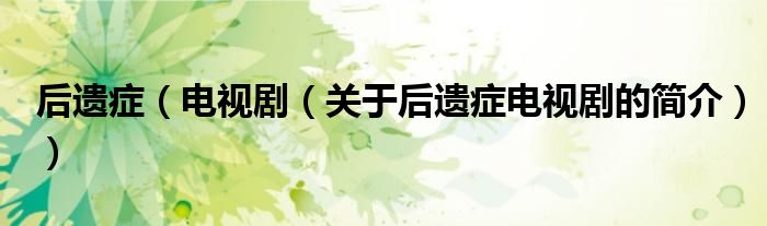 大家好,后遺癥 電視劇,關于后遺癥 電視劇的簡介很多人還不知道,現在讓我們一起來看看吧!