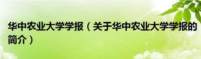 本文關于華中農業大學學報的簡介就講解完畢,希望對大家有所幫助。