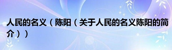 本文關于人民的名義 陳陽的簡介就講解完畢,希望對大家有所幫助。
